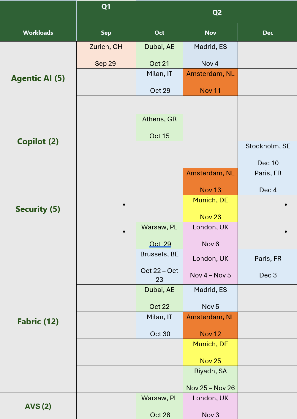 Le Microsoft AI Tour for Partners arrive bientôt dans plusieurs villes du monde, avec 4 étapes en EMEA : Francfort (2 Déc), Londres (26 Fév), Paris (10 Mar), Zurich (5 Mai).
